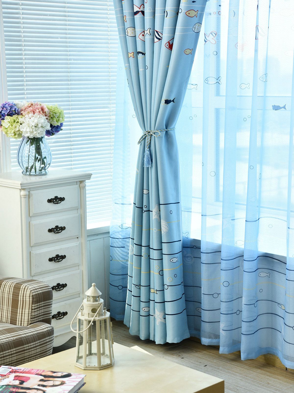 Vorhang Mit Fischen Motiv Blau Fur Wohnzimmer