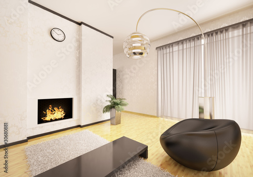 Modern Wohnzimmer Mit Kamin Interior 3d Render Buy This Stock